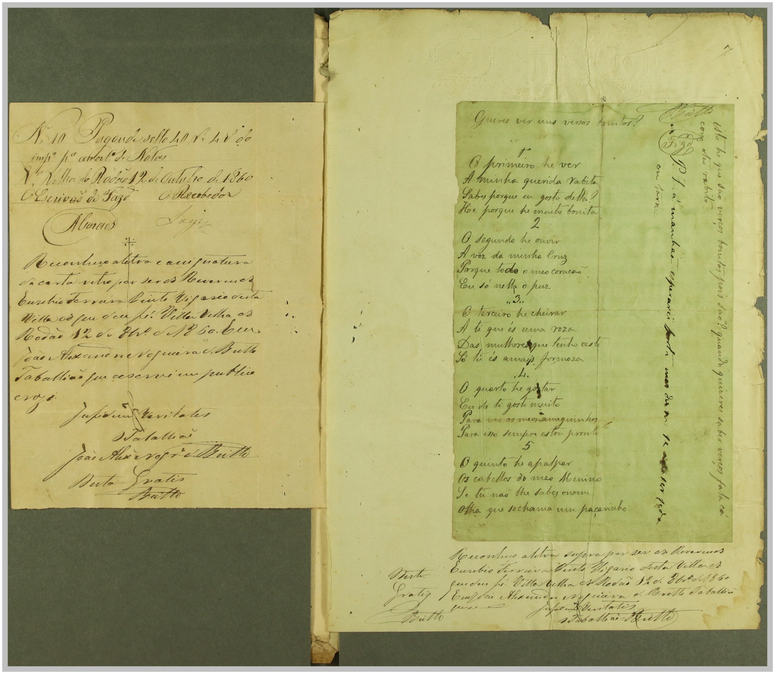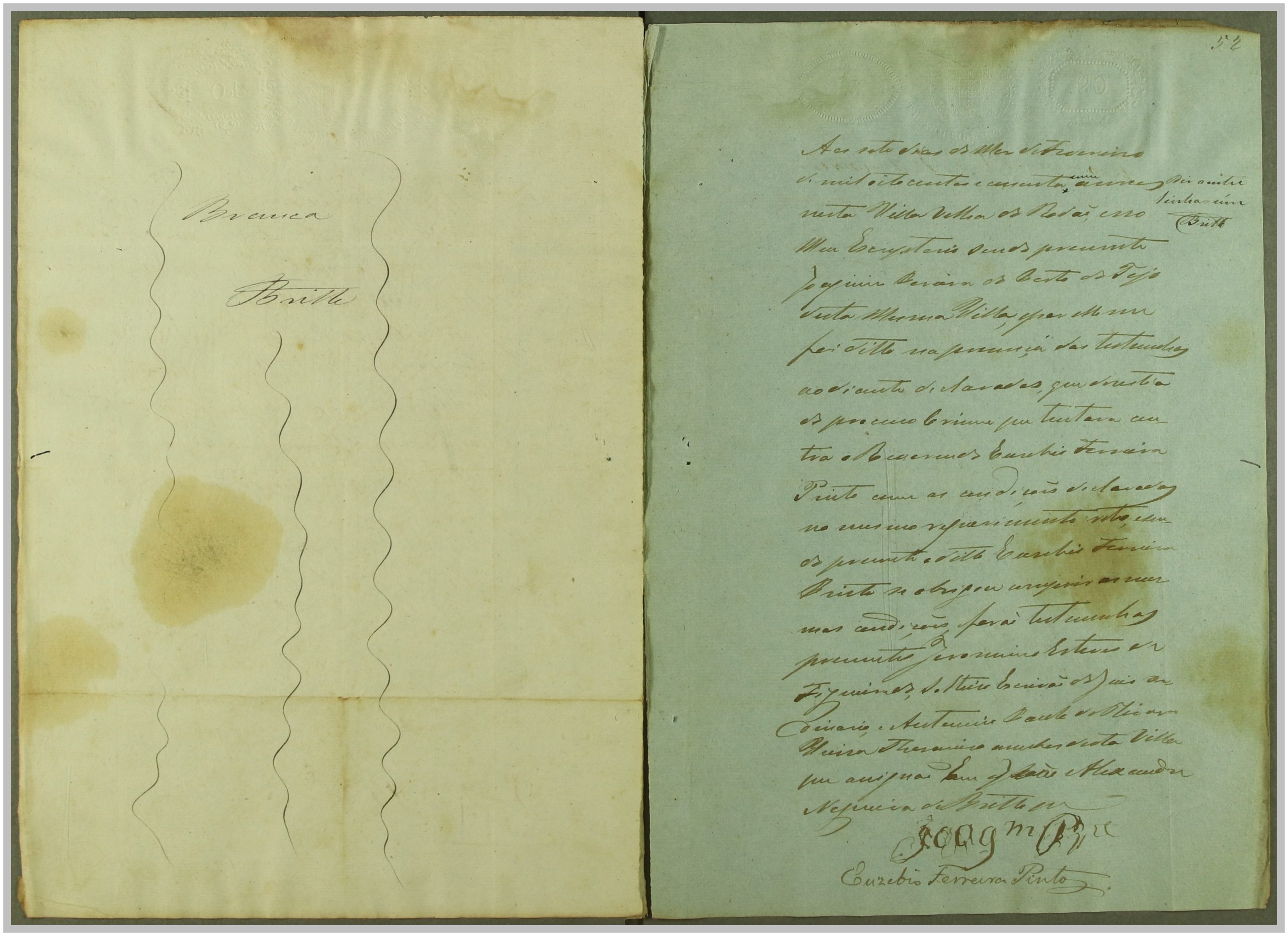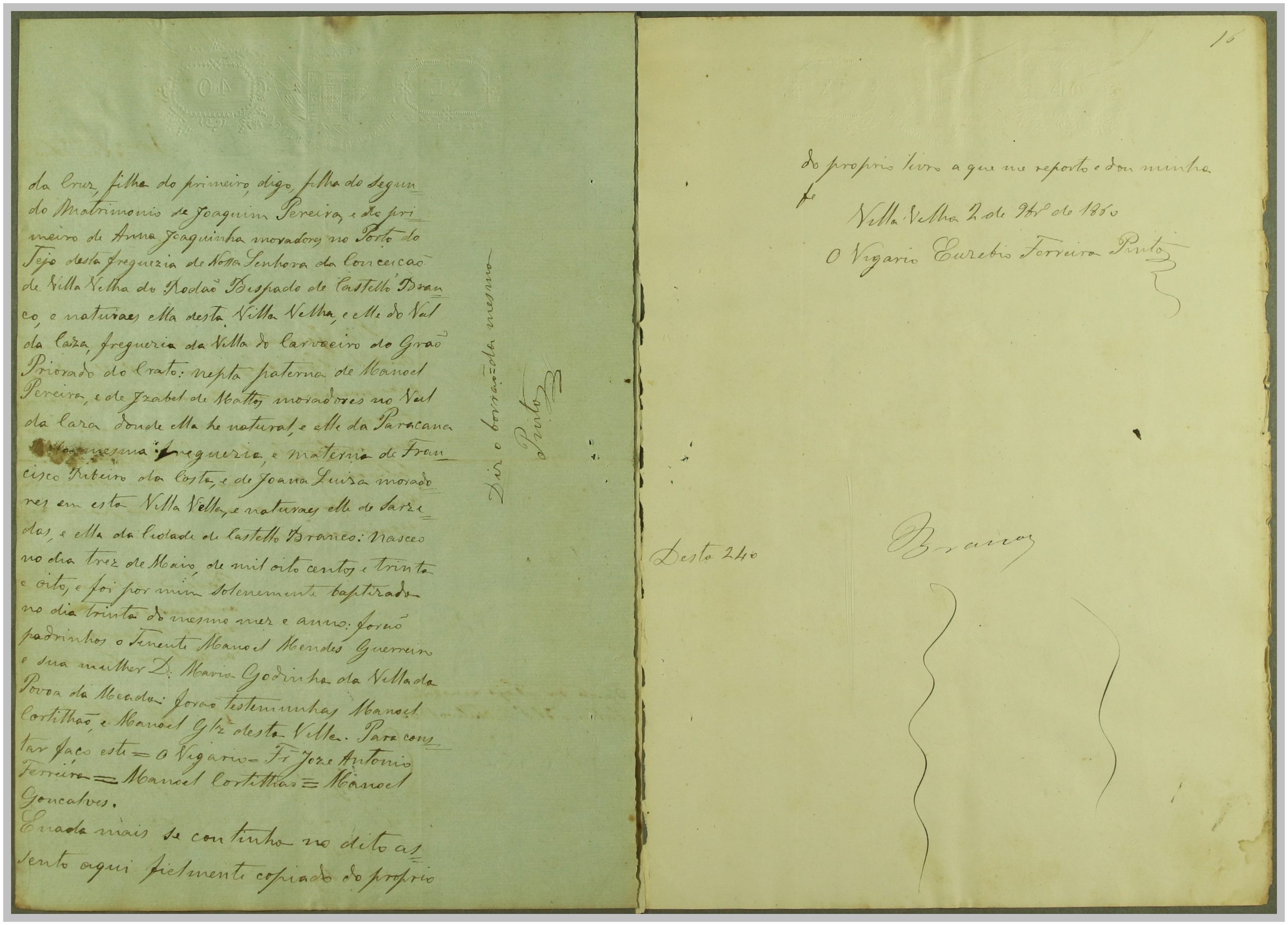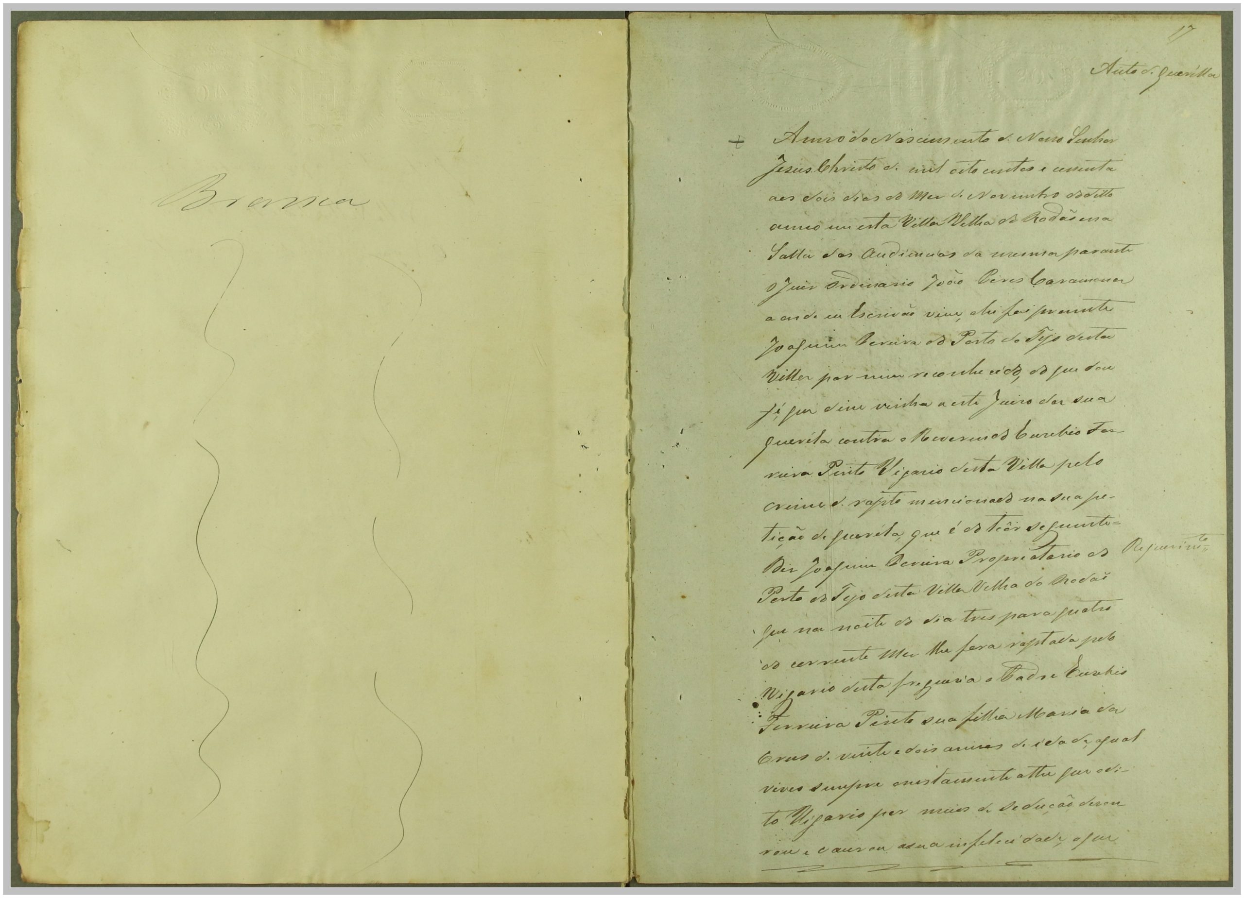Processo “Autos crimes de Rapto” em que o réu Reverendo Euzebio Ferreira Pinto foi acusado pelo crime de sedução e rapto de Maria da Cruz, com consentimento da mesma, mas punido pelo Código Penal em 1860. Através do exame de corpo de delito às cartas trocadas, que fazem parte integrante do processo, e à inquirição das testemunhas, foi o réu condenado a prisão e livramento; após a condenação, o autor Joaquim Pereira, pai da raptada, apresentou desistência do processo.