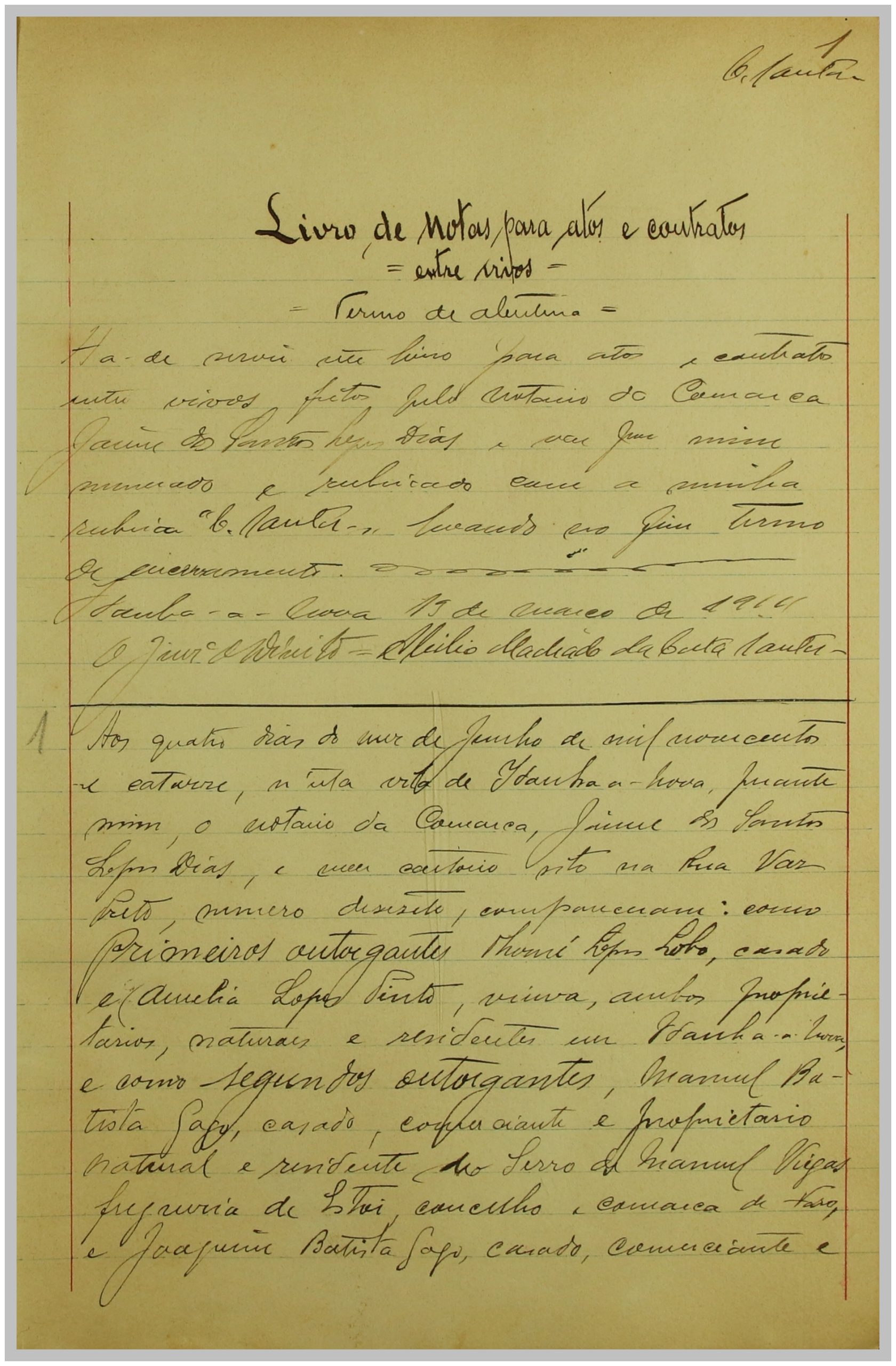 Celebra-se a 2 de outubro o Dia Internacional do Notário, para assinalar a data destacamos a primeira escritura lavrada em 04/06/1914 no livro de notas do Cartório Notarial de Idanha-a-Nova (PT/ADCTB/NOT/CNIDN/001/00322) por Jaime Lopes dos Santos Dias enquanto notário.