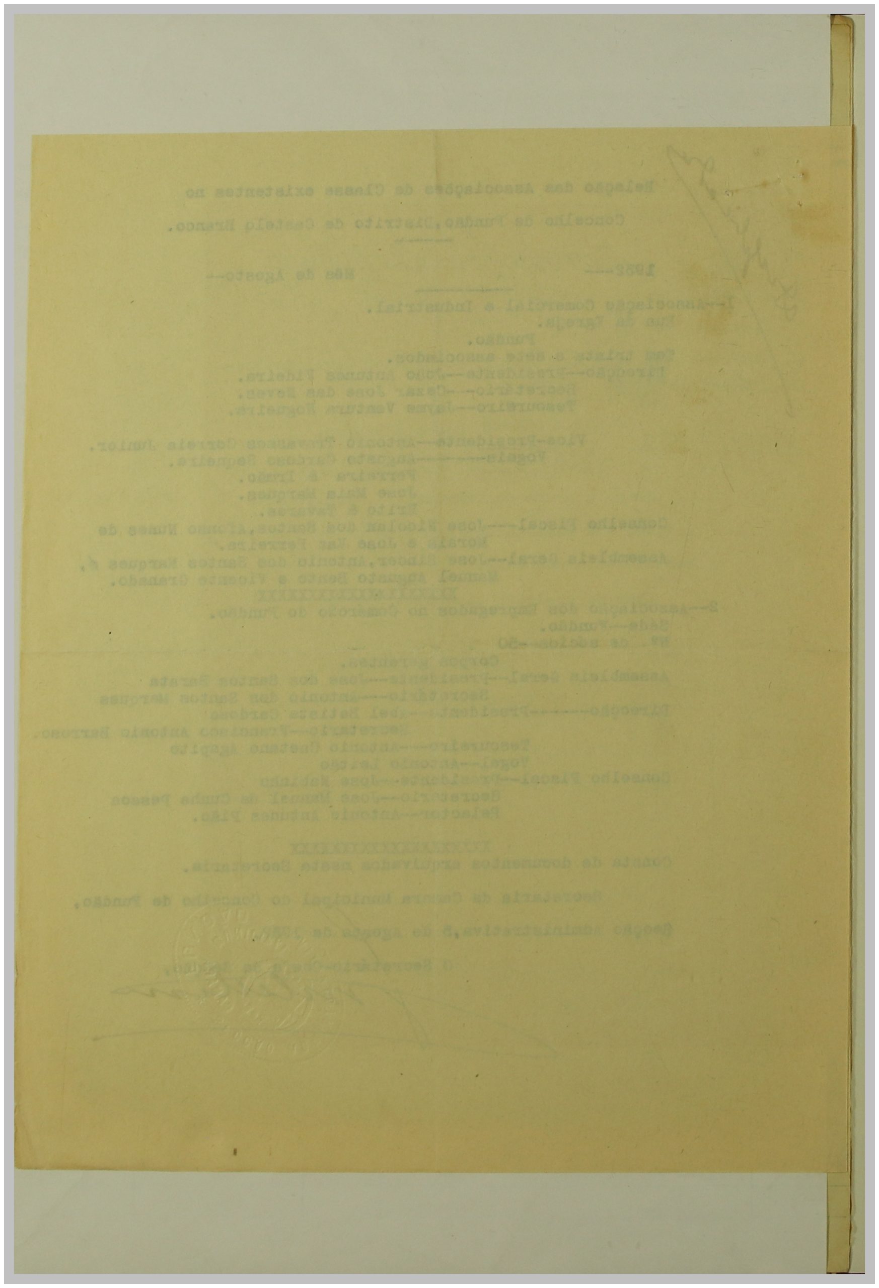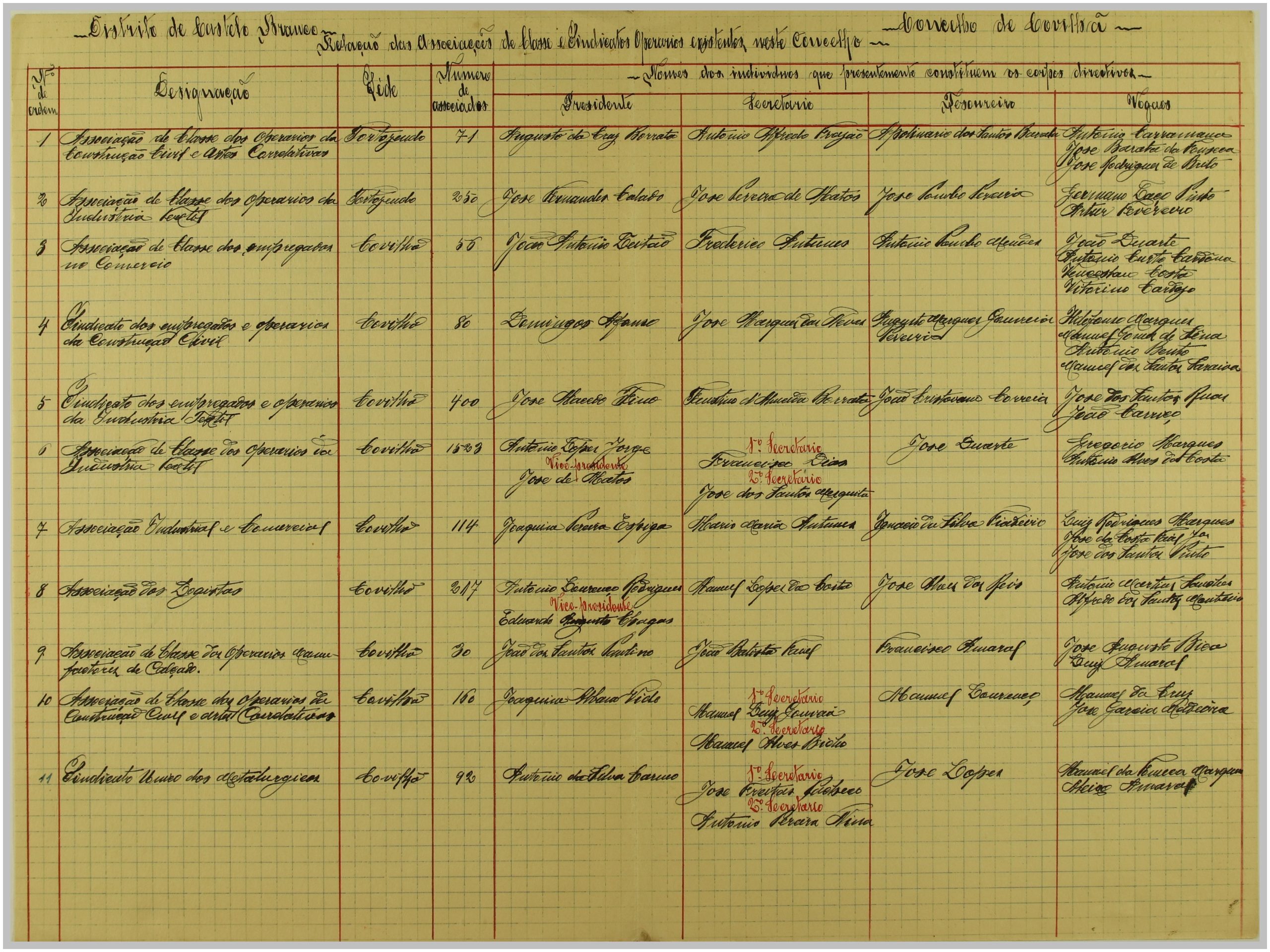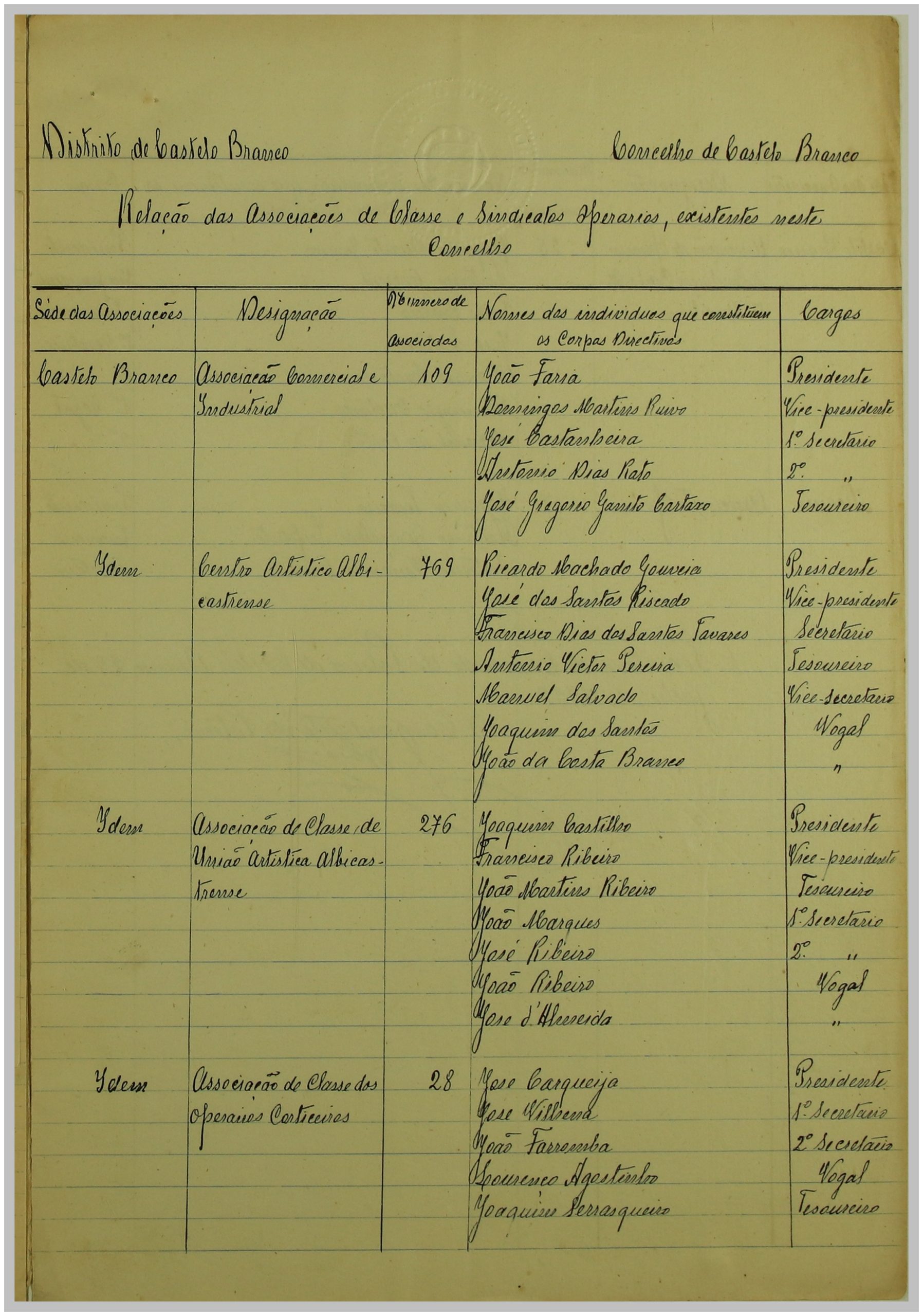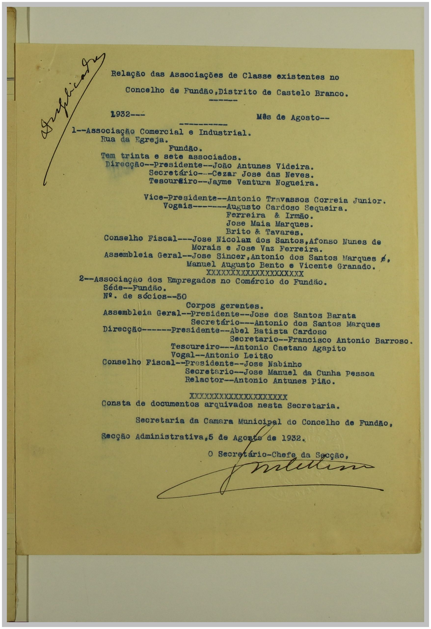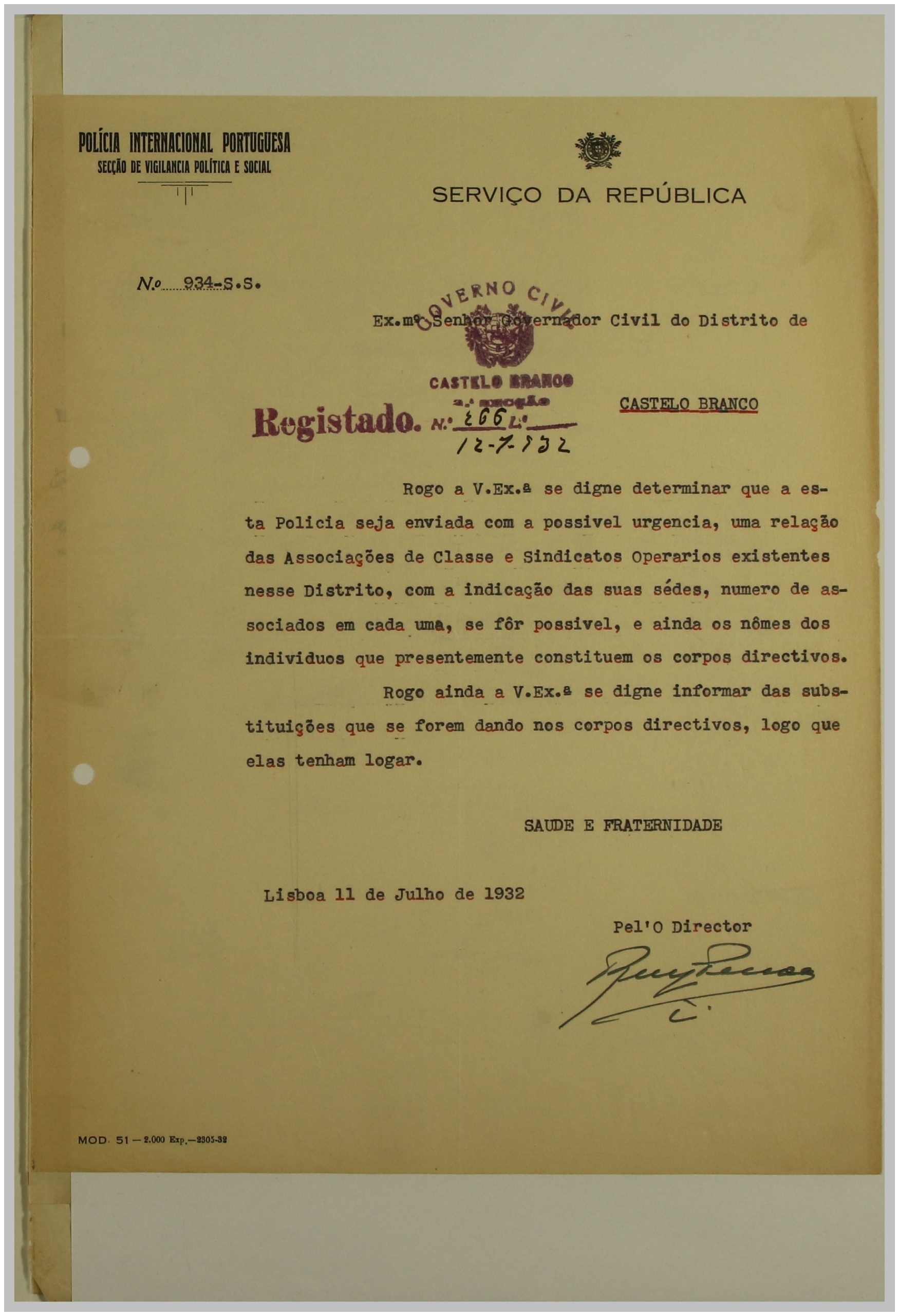 É neste contexto que a Secção de Vigilância Política e Social da Polícia Internacional Portuguesa dirige uma circular ao Governo Civil, solicitando a relação das Associações de Classe e Sindicatos Operários existentes no distrito de Castelo Branco. As respostas a esta circular constituem um importante registo do movimento associativo e sindical da época nesta região.