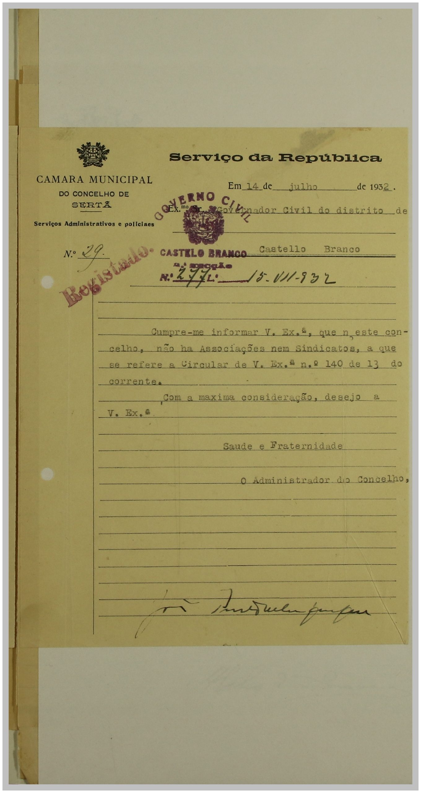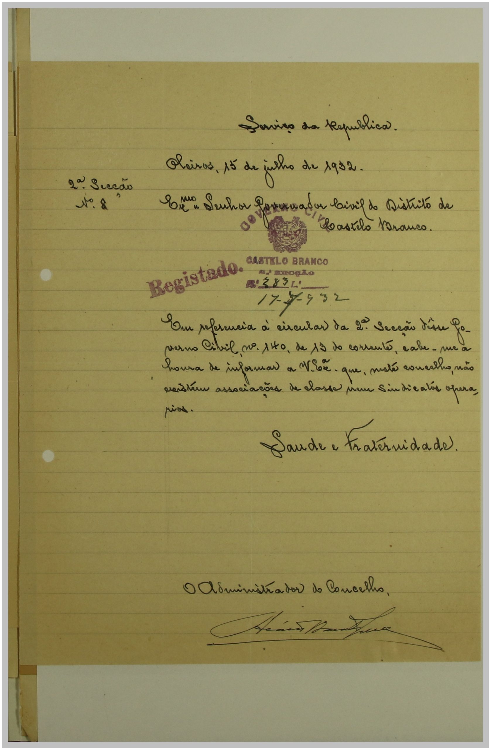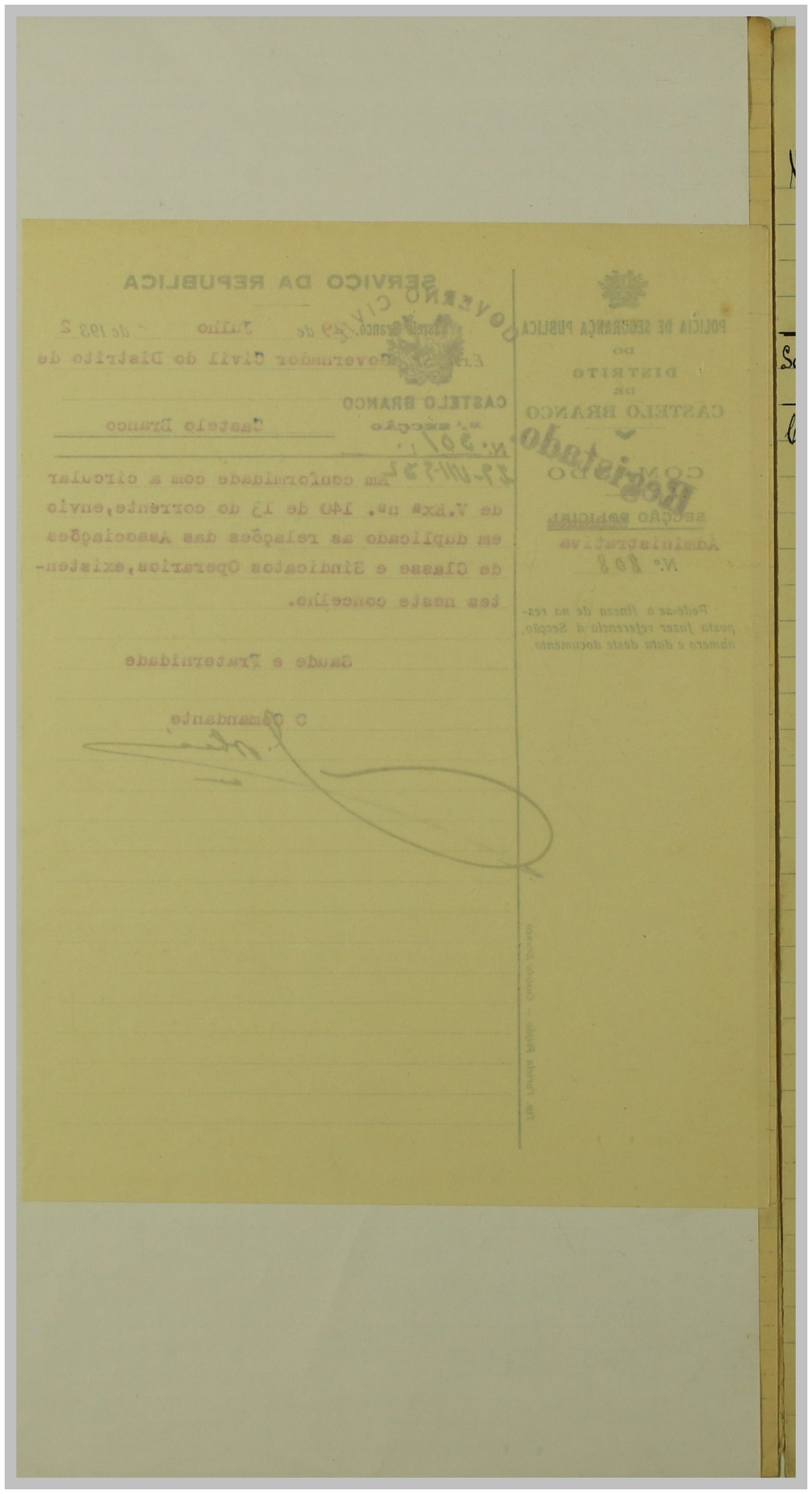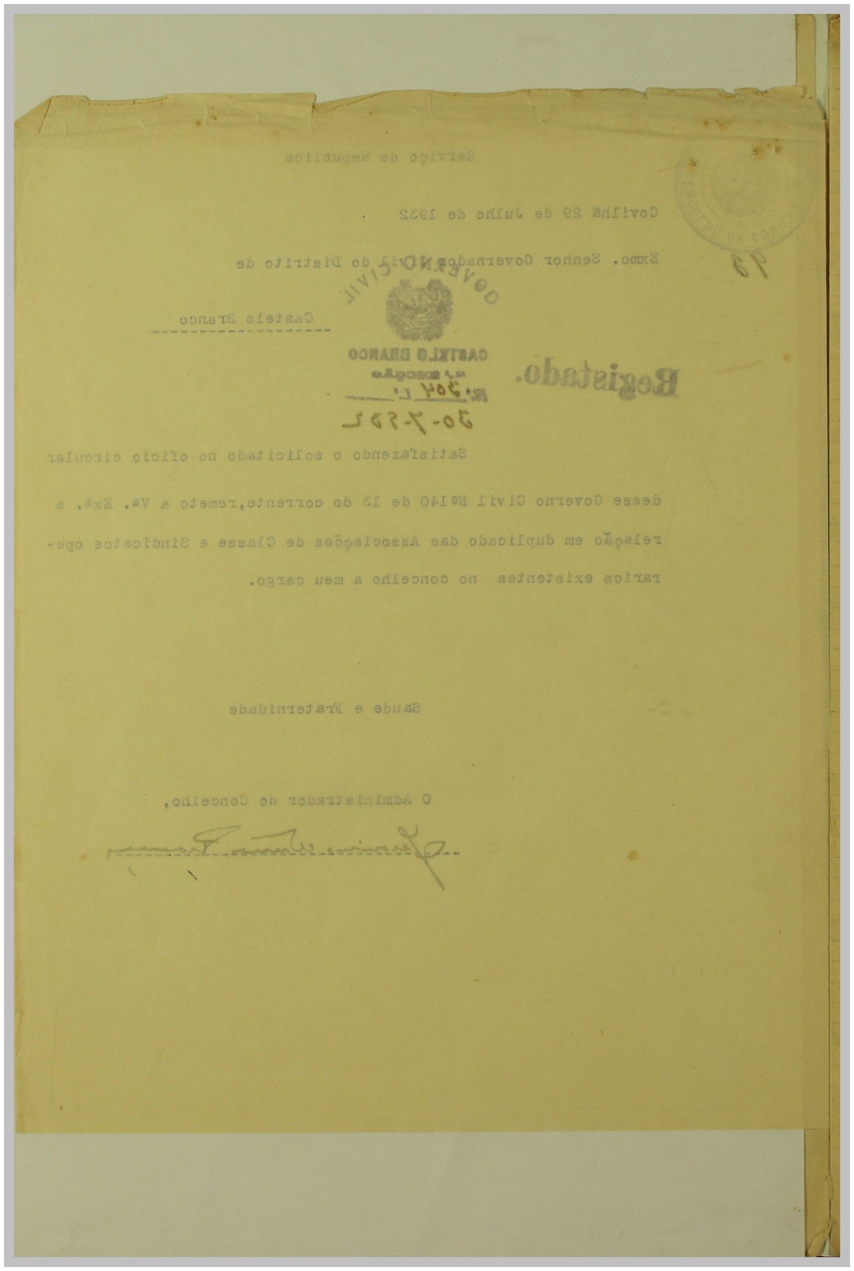 É neste contexto que a Secção de Vigilância Política e Social da Polícia Internacional Portuguesa dirige uma circular ao Governo Civil, solicitando a relação das Associações de Classe e Sindicatos Operários existentes no distrito de Castelo Branco. As respostas a esta circular constituem um importante registo do movimento associativo e sindical da época nesta região.