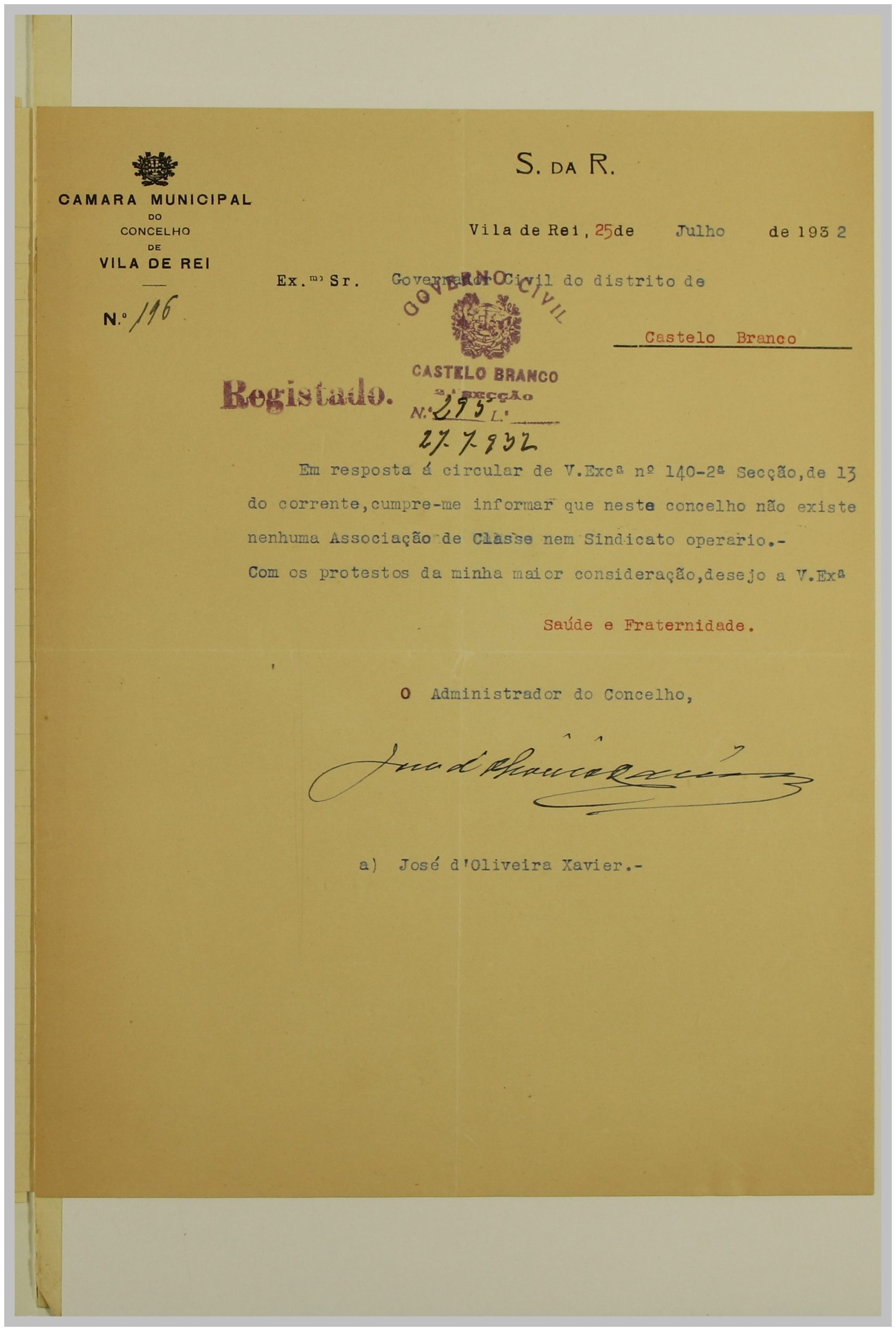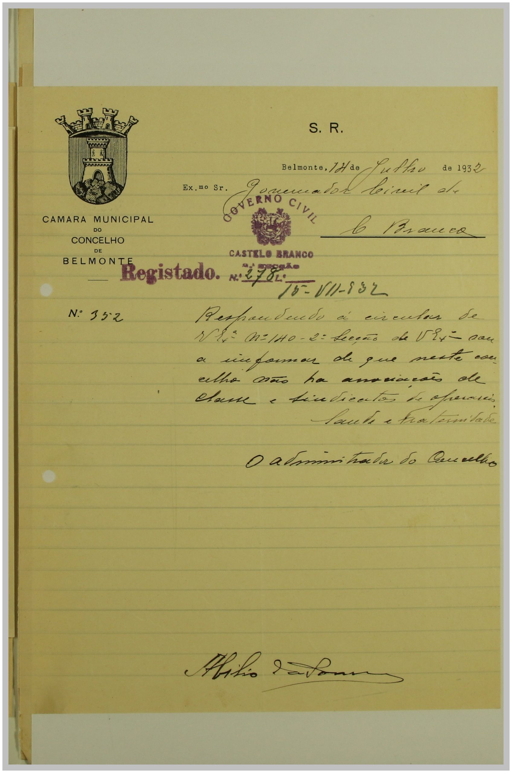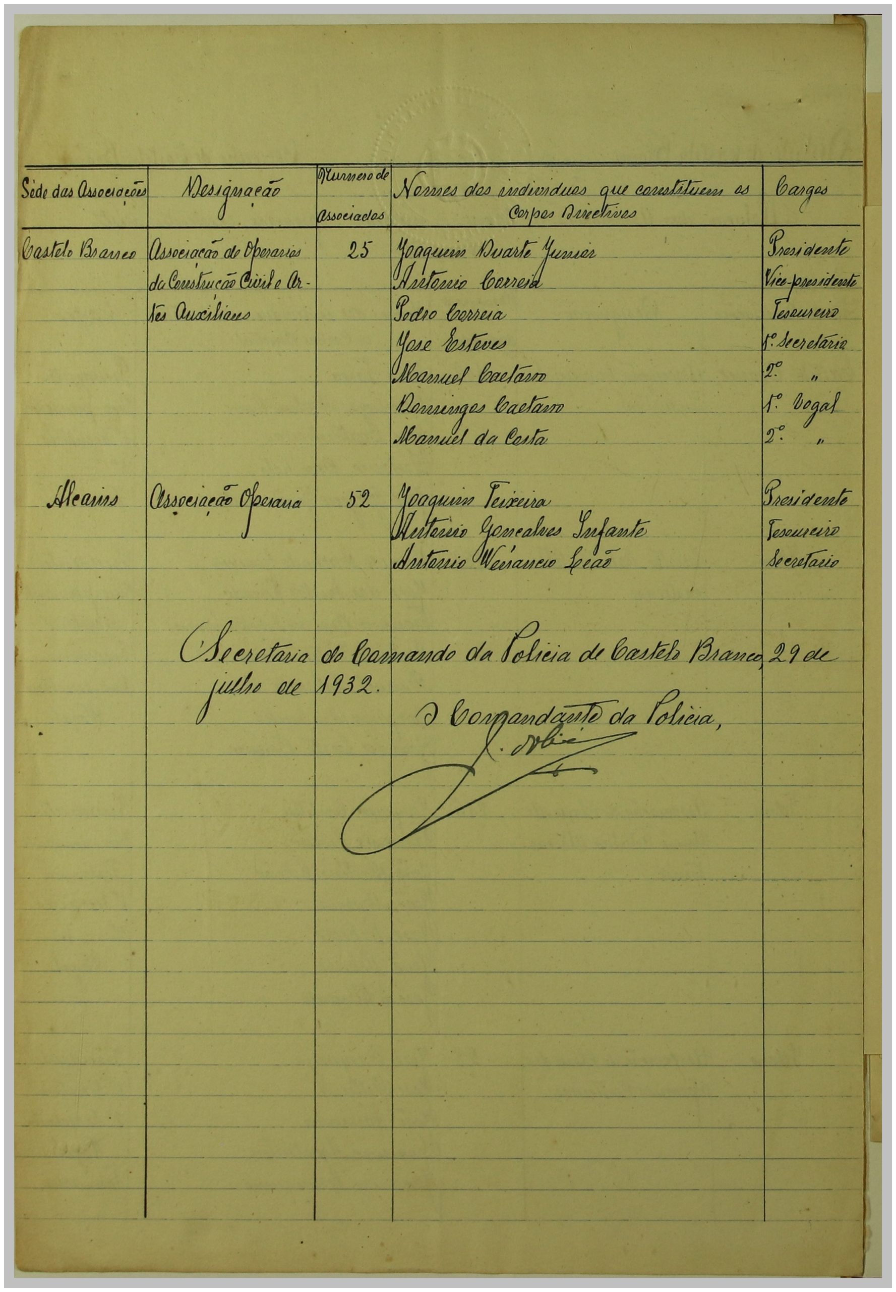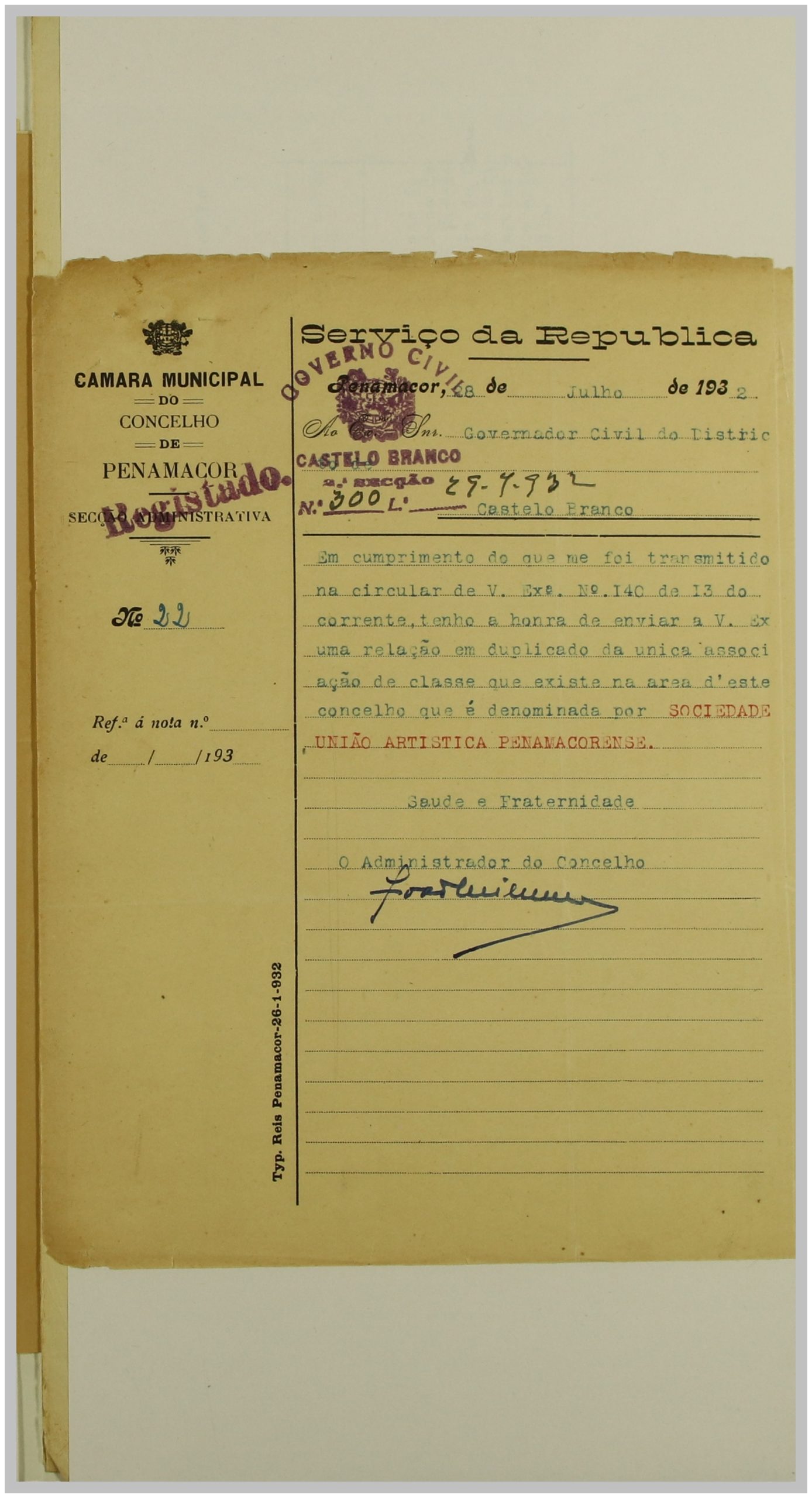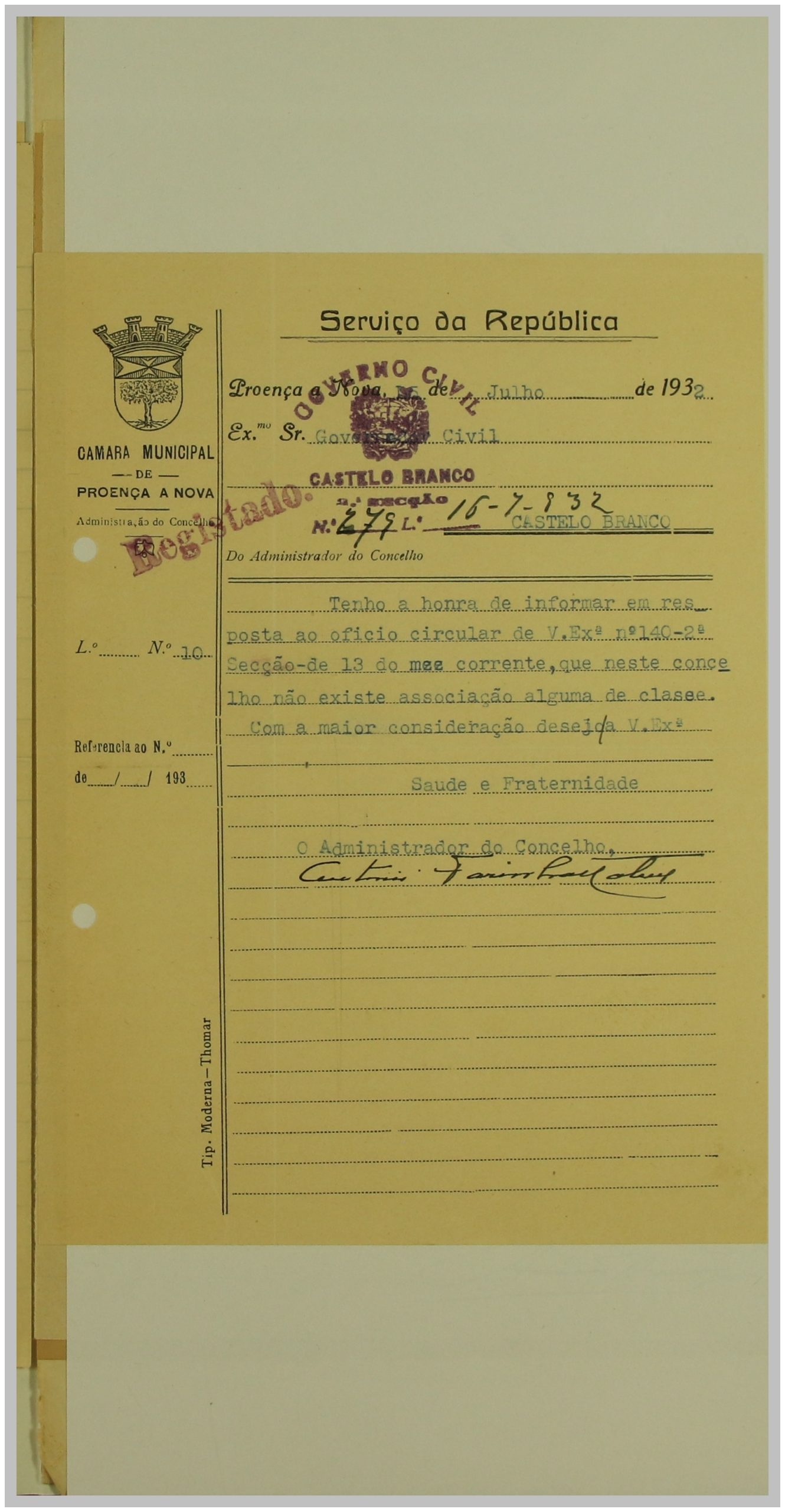 É neste contexto que a Secção de Vigilância Política e Social da Polícia Internacional Portuguesa dirige uma circular ao Governo Civil, solicitando a relação das Associações de Classe e Sindicatos Operários existentes no distrito de Castelo Branco. As respostas a esta circular constituem um importante registo do movimento associativo e sindical da época nesta região.