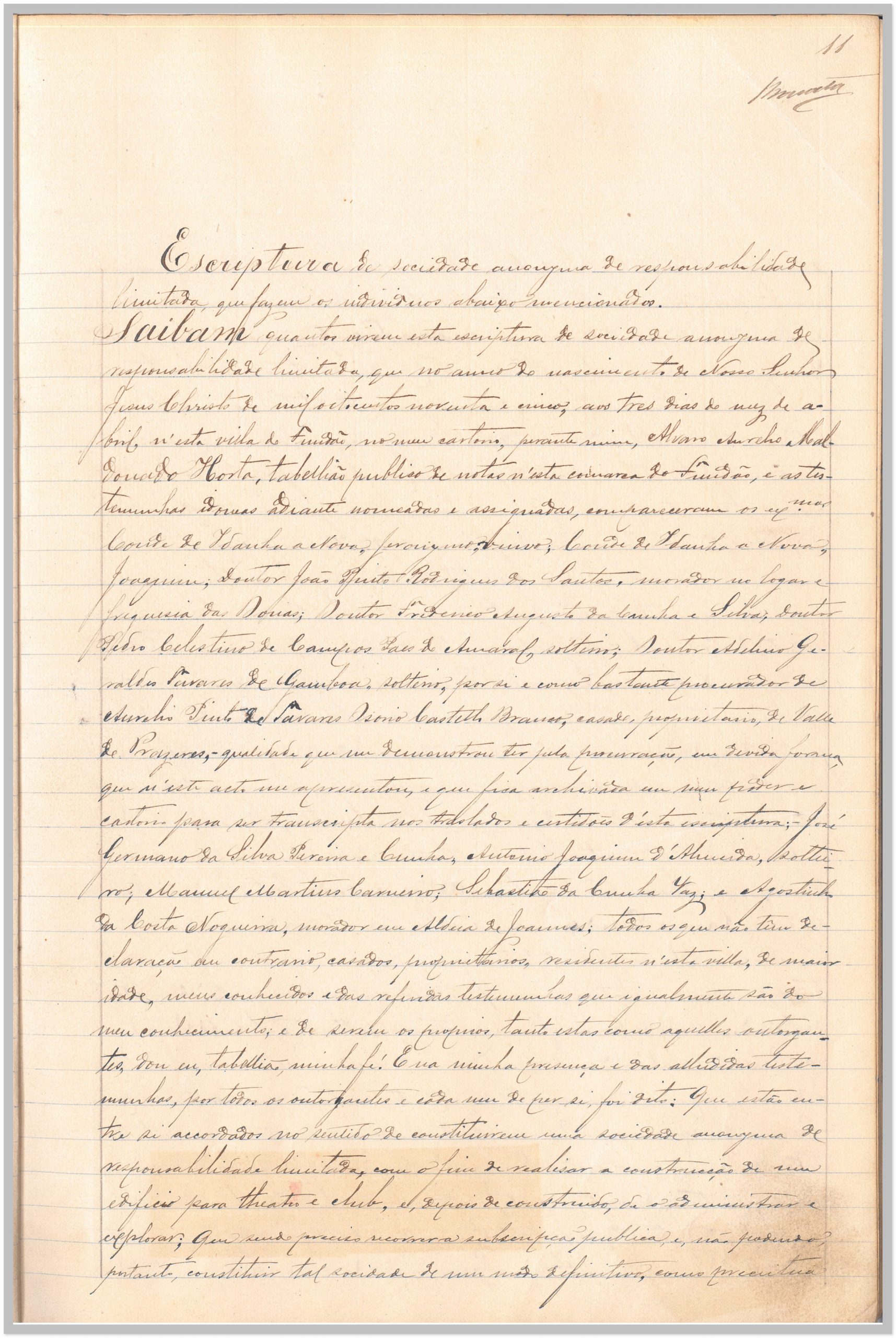 Escritura de constituição de Sociedade Anónima de responsabilidade limitada – Casino Fundanense